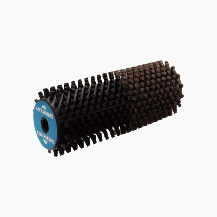 레이스 직전의 사용도 고려해, 고속 회전하는 브러쉬와 솔 사이의 정전기를 억제하는 하야시 왁스 오리지날 「블랙 나일론 사양」.